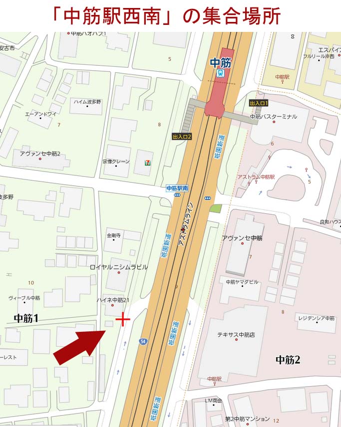 | ◇中筋駅西南 | 7時50分 | (アストラム中筋駅南交差点南西にしき堂前) |