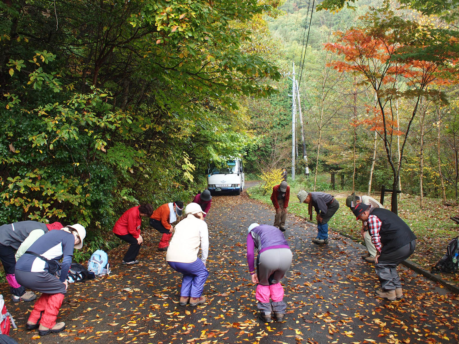 上りのコースはあまり歩かれていないのか、林の中は倒木が多く、ササの道はササが道をふさいでいた。しかしこんな道を歩いたことのない参加者には楽しかったかもしれない。会員の皆さんの積極的な支えで、気持ちよいハイキングができたと思う。