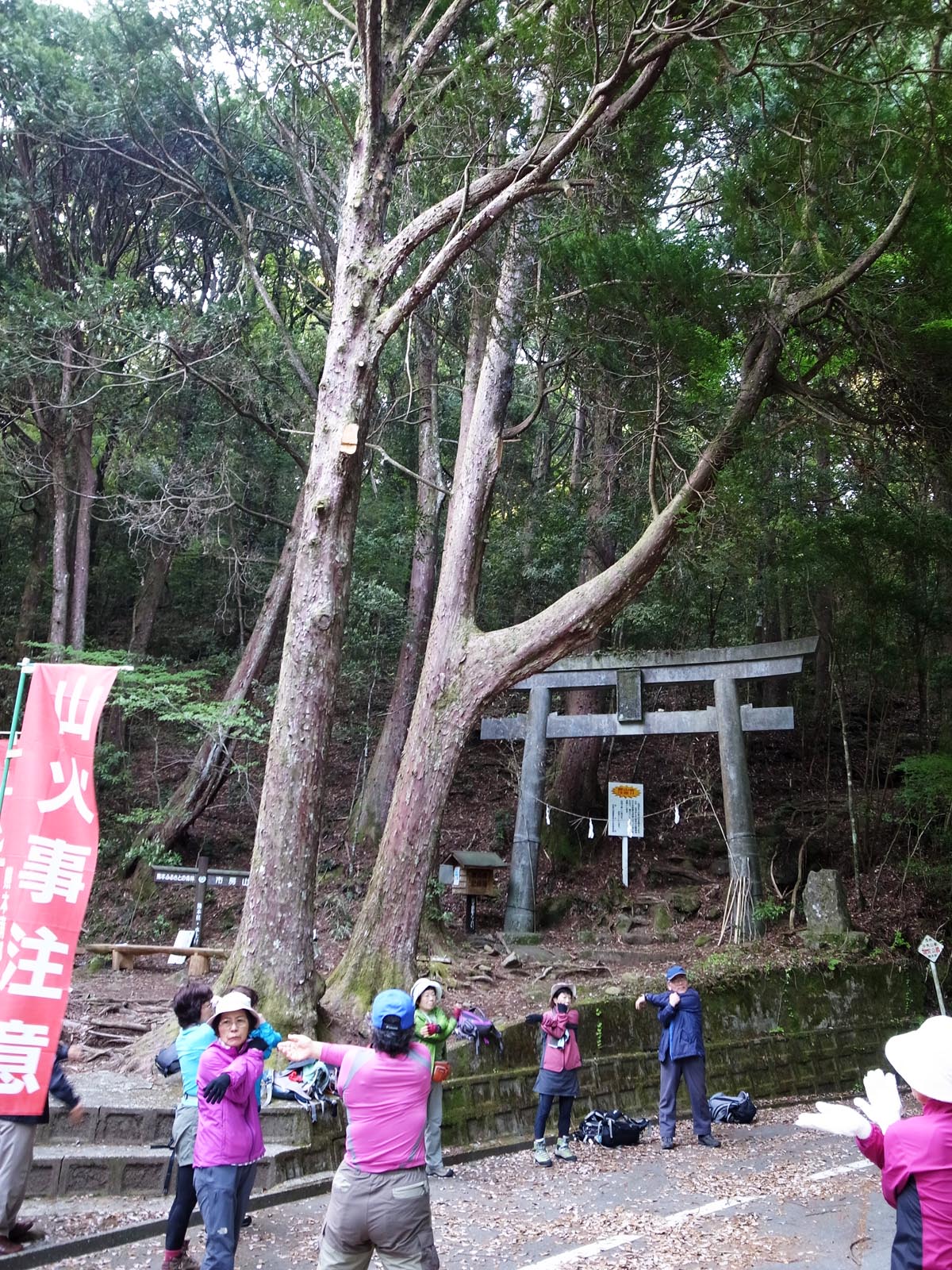 観光ホテル出発7:10→登山口(2合目)7:30→市房神社(4合目)8:20→