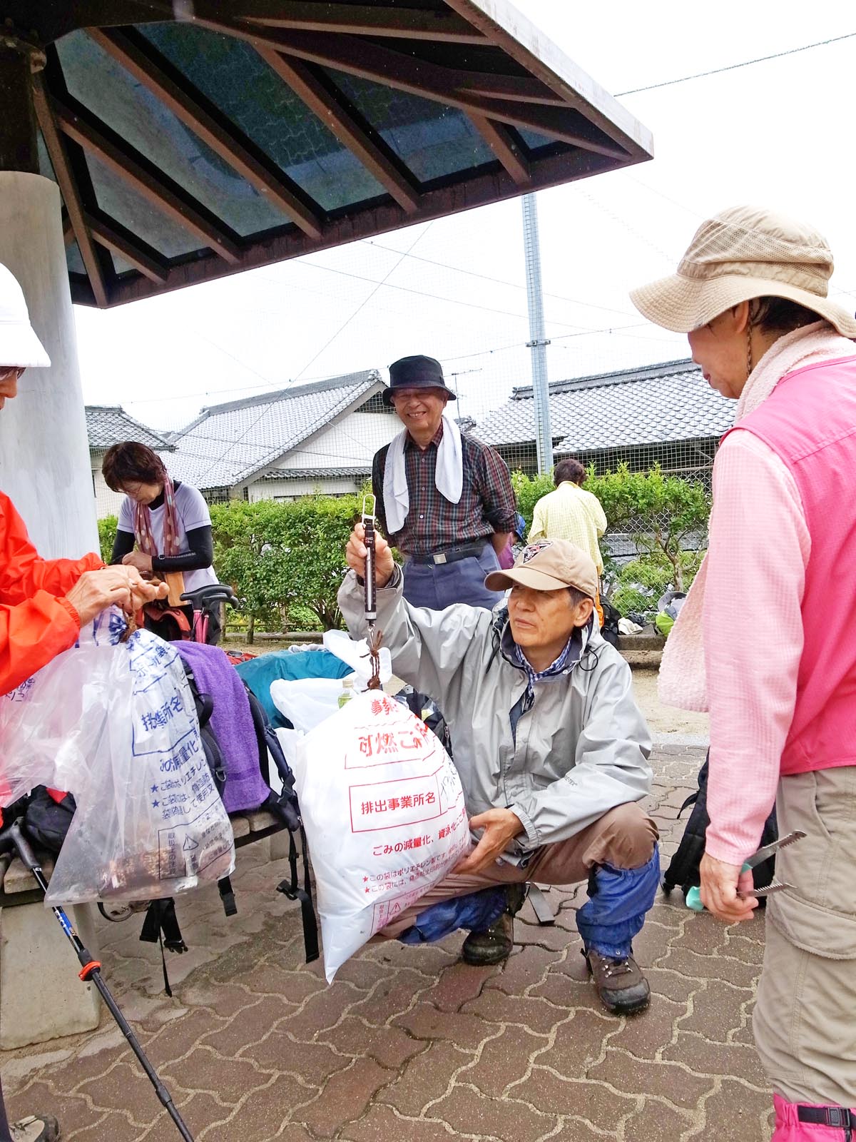 まあ、雨の山行も、学ぶことあるから〜との、思いでした。去年とは少し集合時間を遅くし、大師寺で体操し、Bルートをごみを拾いながら歩きました。大師寺では河野千鶴子氏を偲んで黙とう致しました。 頂上では早い昼食となり、12:00に、下山開始。私は、忘れ物等がないか、見廻って出発しました。Aルート、Bルートの案内のプレート板を左にみて、歩きましたが、しばらくして左へ降りる分岐点を見落としたことに気が付き、カムバック?このまま、Bルートへ降りる?で花岡さん、坂井さんに携帯рナ指示受けました。私と行動を共にして下さった、川村さん、原田さんとBルートで大師寺へ降り、幹線道路を東へ歩き、一貫田公園に到着。一貫田公園ではゴミを仕訳中でした。まさに、ヒヤリハットでした。原因は頂上発が、ほんの少し遅れたことが列に追いつけなかった事だと思いました。大反省の山行でした。