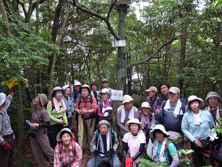 夏山トレーニング山行と位置づけての山行である。宮島桟橋から岩船岳の全往復でなく一部タクシーを利用した往復コースである。タクシー2往復で全員予定の登山口へ着けるはずであった。しかし,1台が遅れたため24名で先に出発した。遅れた3名は25分遅れで登山口を出発し,大川越で追いつく。人数が多いので,三浦さんと宮木さんにリーダーの補助をしてもらう。全体がばらけないようなペースで歩いたので,全員調子よく岩船岳山頂に着くことができた。