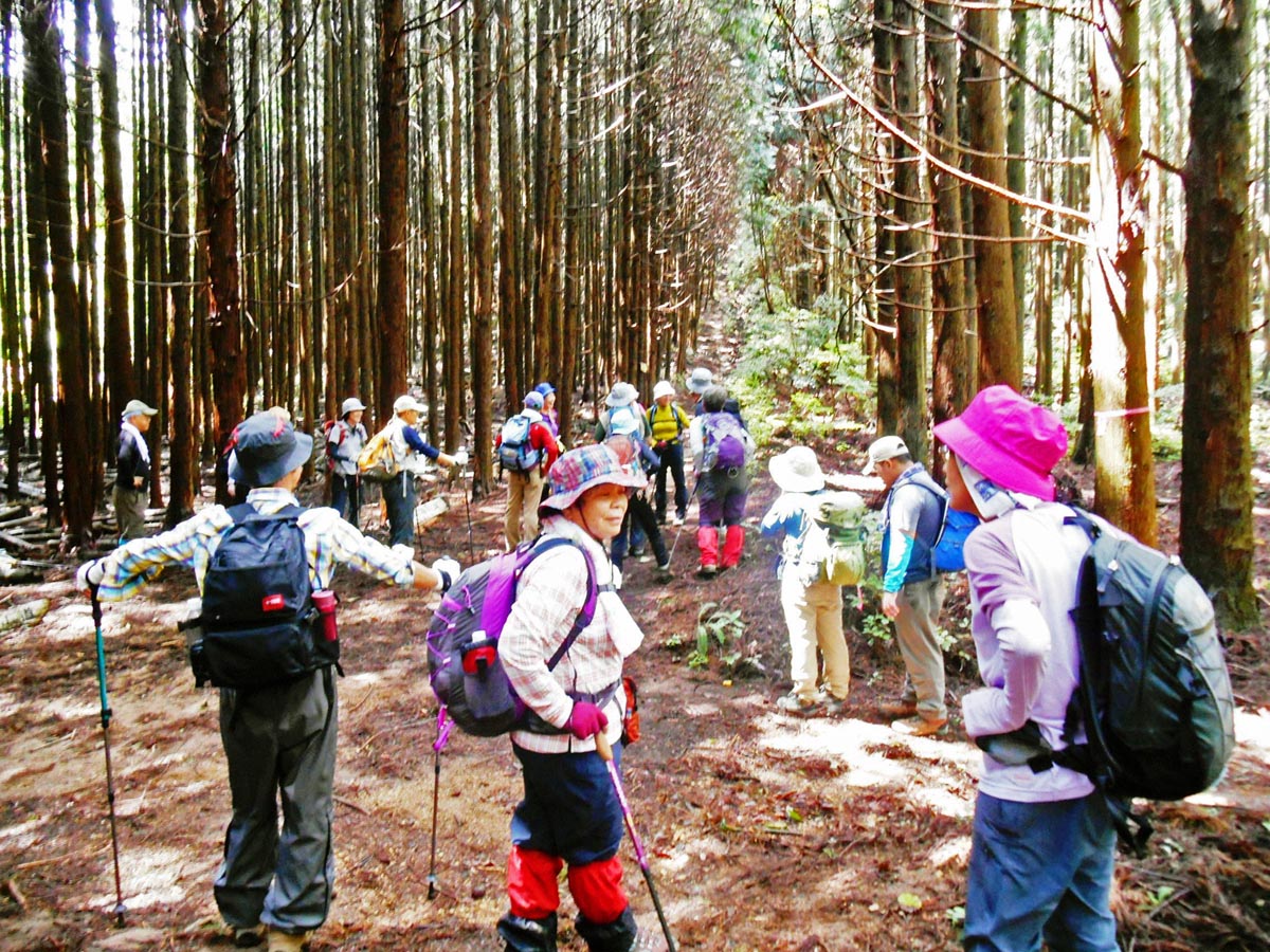 下山は、南東に下る道を降り、約40分で林道に到着し、ここから県央の森公園迄歩いて戻りました。(西田文雄 記)