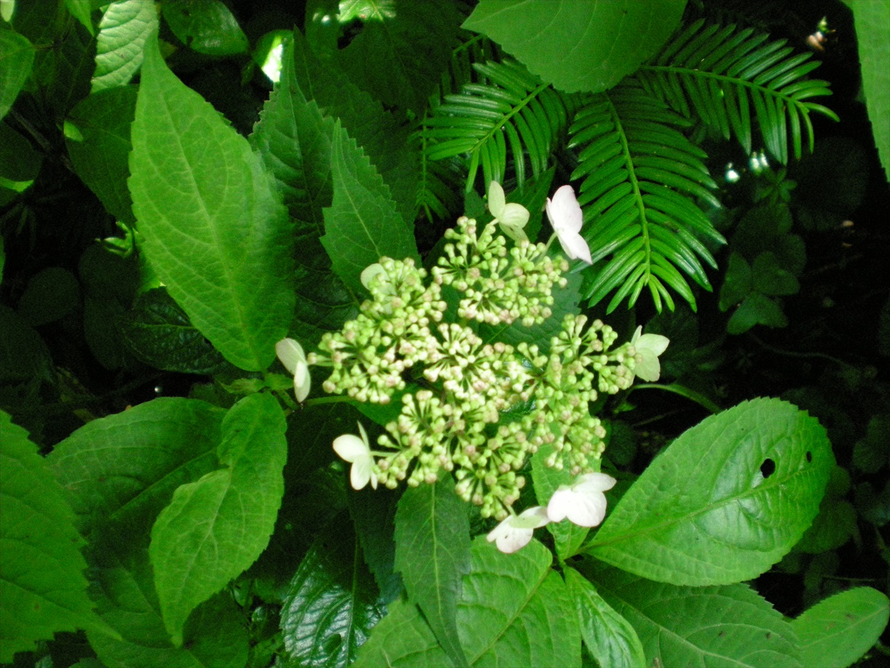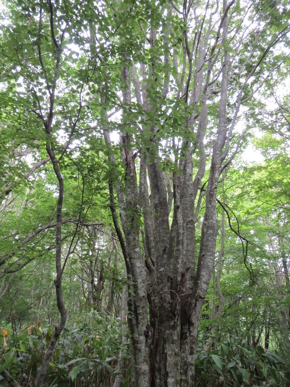 | 恐羅漢山へ向け出発 | ヤマアジサイ | 珍しい形のブナの木(?) | ふと見上げると・・・ タンナサワフタギ(?) |