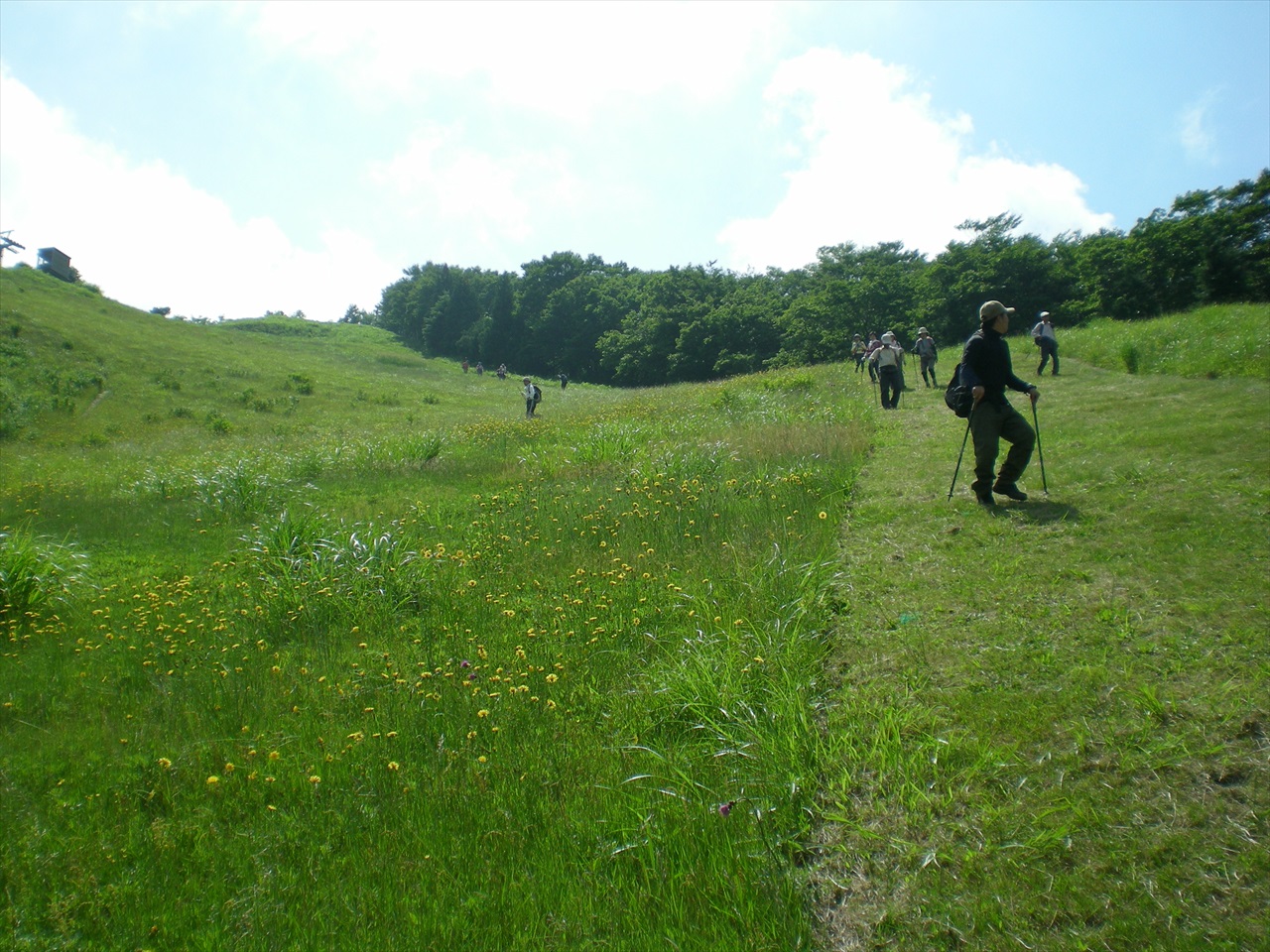 牛小屋高原レストハウスへ | 急斜面を下る | ピンク色で清楚なササユリ |