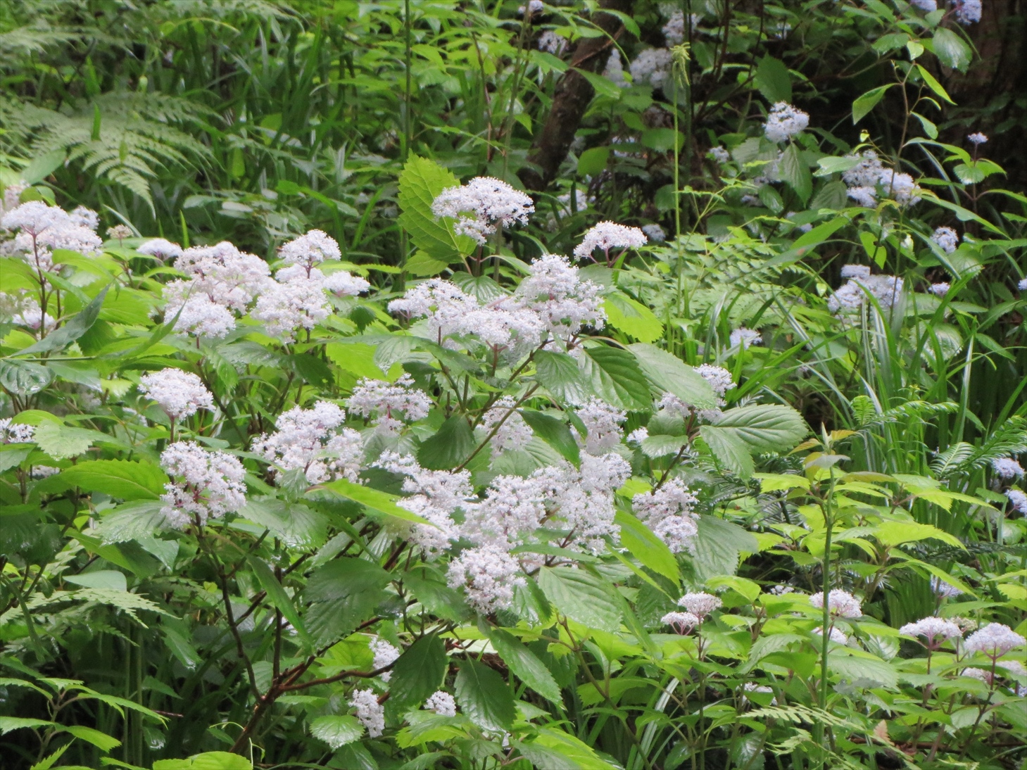 下山道には可愛くて可憐なヤマアジサイ、コアジサイが見頃に群生しており目を楽しませてくれました。