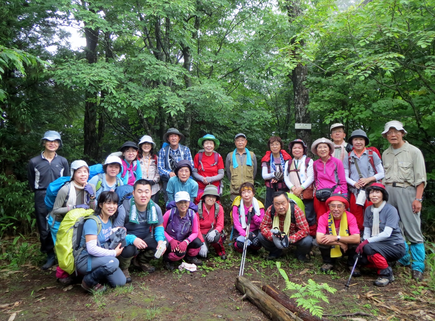 | 頂上に着きました | 早速、集合写真〜昼食〜休憩 | ヤマアジサイ | コアジサイ群生 |