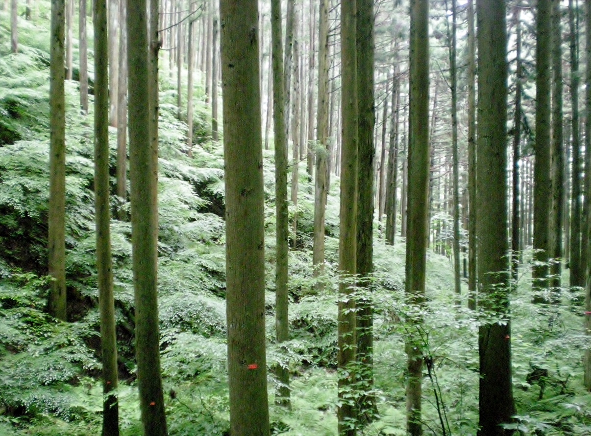 | いつの間にか林道へ出ました | その後バスで移動 田之尻の森下さん宅のアジサイ庭園へ |