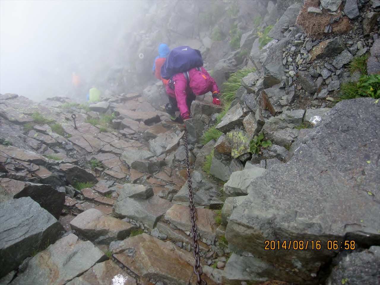 | 大雨の中、黙々と北穂高を目指す | 昼前に北穂高小屋に着く(北穂高小屋泊) |