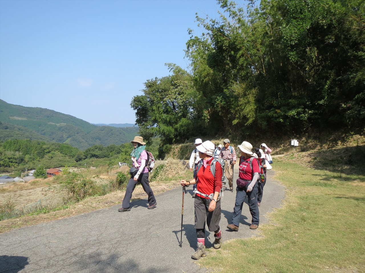 | 登山道に向け出発 → | 青い空、よく晴れています | ツルボ |