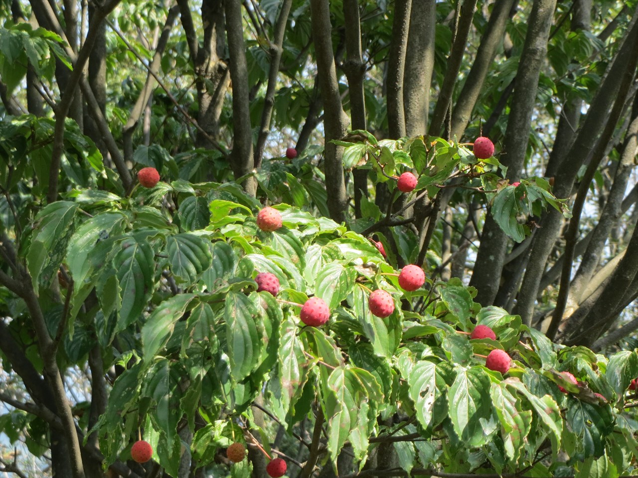 | 飛行場が見えます | お天気にもかかわらず多島美はボンヤリ | ヤマボウシの実 |