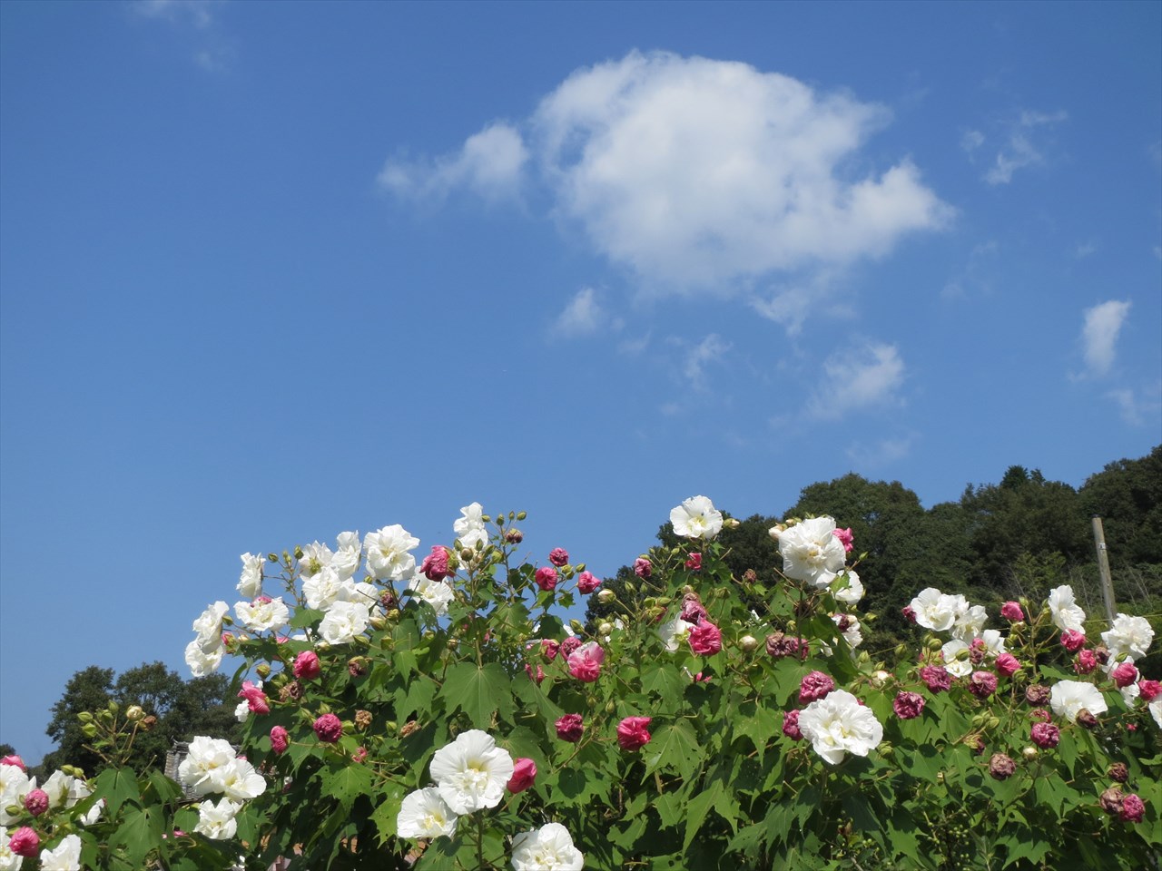 | お茶の花 | 見上げるとアケビ | 途中のお家のフヨウが綺麗だったので1枚 |