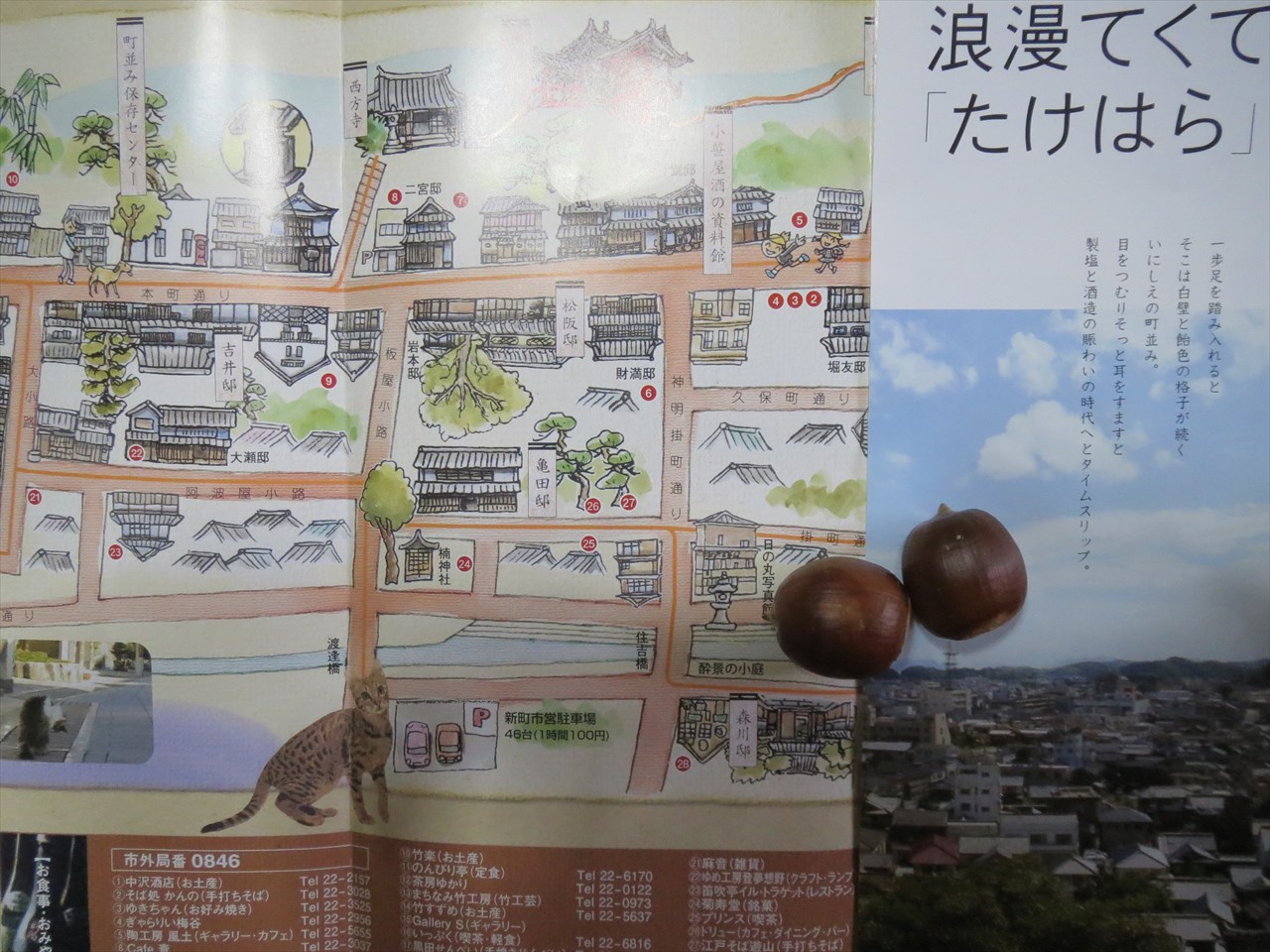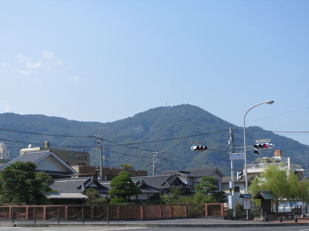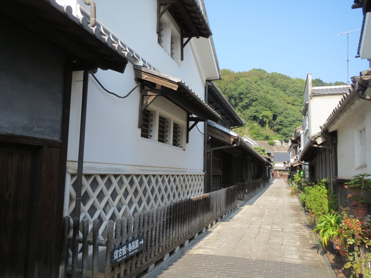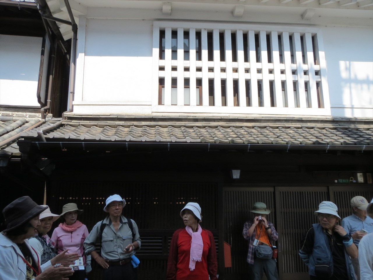 | 町並み保存地区から見た朝日山 | タイムスリップした様な竹原の町並み | ガイドさん(左端)の案内で。 建物の作りや歴史・人物など多岐に渡って説明して頂きました |