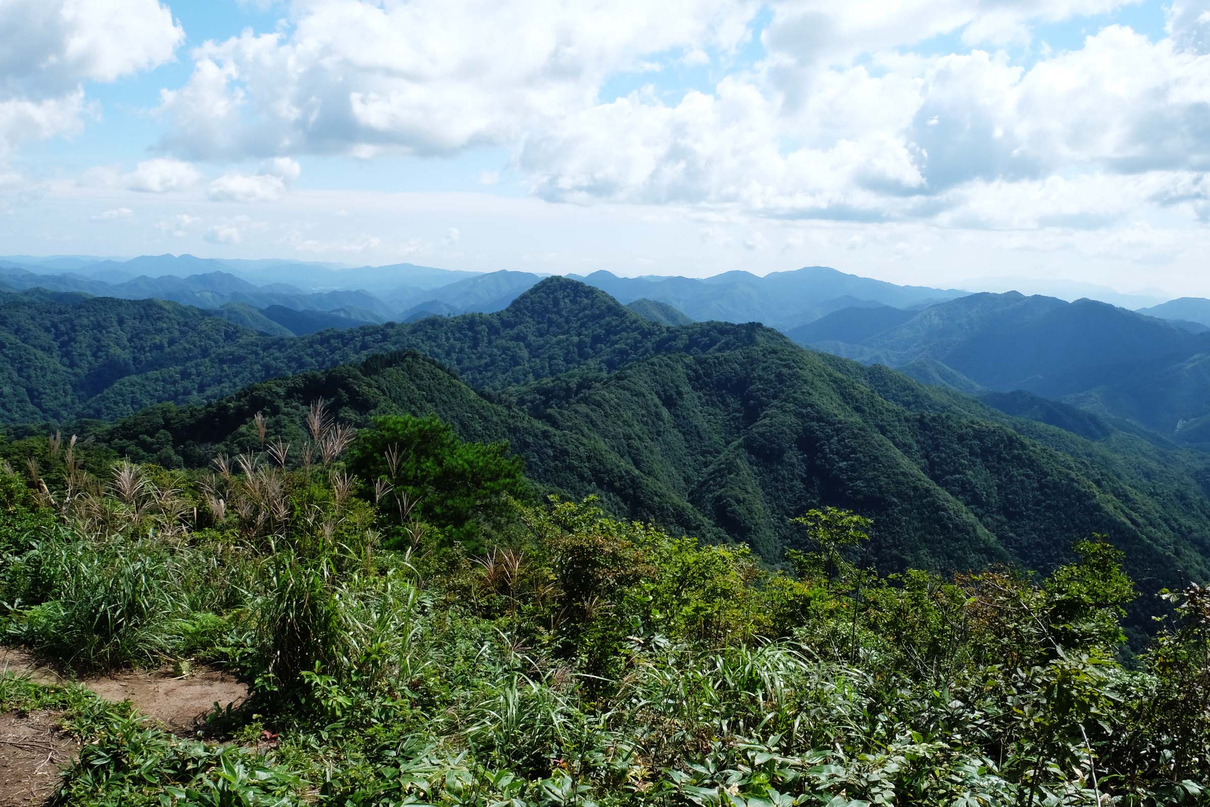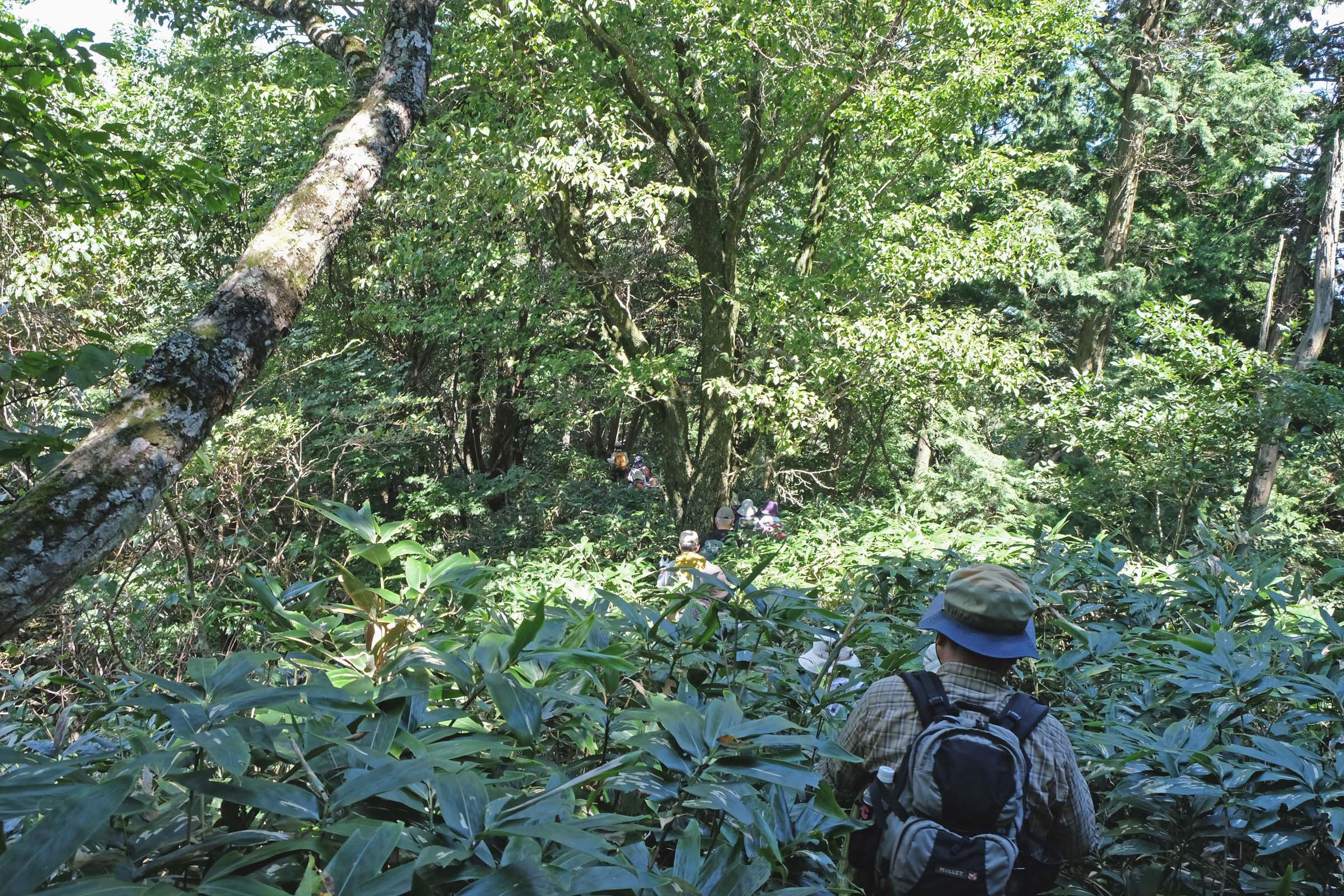 頂上からブナ林の中の尾根道は、アップダウンの続く道で、途中ではクマ笹が縦走路を覆う様になり、肩の高さまであるクマ笹にびっしりと囲まれた尾根道は、かなり手強い道となった。