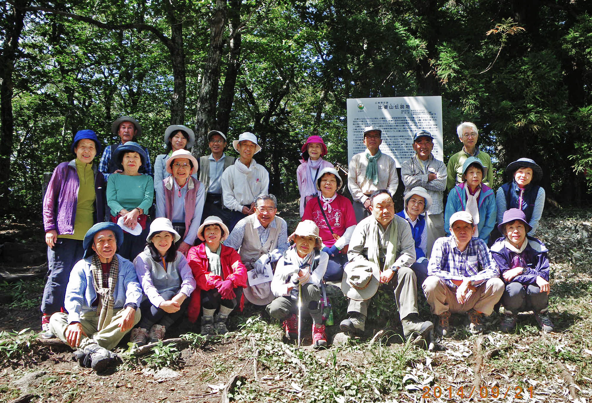チョット心配したお天気も、快晴の山行日和に一安心、今日はいい山行になることを確信して出発しました。予定より20分早く、比婆山古道登山口に到着、みんなでストレッチを済ませ、いざ出発。今回の比婆山古道は、9合目位の太鼓岩までは、ほとんど平らなところがないため、15分登っては5分立ち休憩を繰り返しながら登りました。太鼓岩では、メンバーの一人が手でたたいてみたが、手が痛いだけで音は響かず、残念でした。皆様のご協力のもと、予定より30分早く山頂に到着しました。日差しを避け木陰に陣取った秋信さんと私は、寒いねと言いながら、昼食をすませました。昼食後に、記念の集合写真を撮り下山開始。下りは、結構距離があるため20〜25分下っては、5分立ち休憩を繰り返し、下山しました。登り下り共に森林浴を楽しみ、木漏れ日の中を、快適に歩くことが出来ました。ご参加くださいましたメンバーの皆様、ありがとうございました。