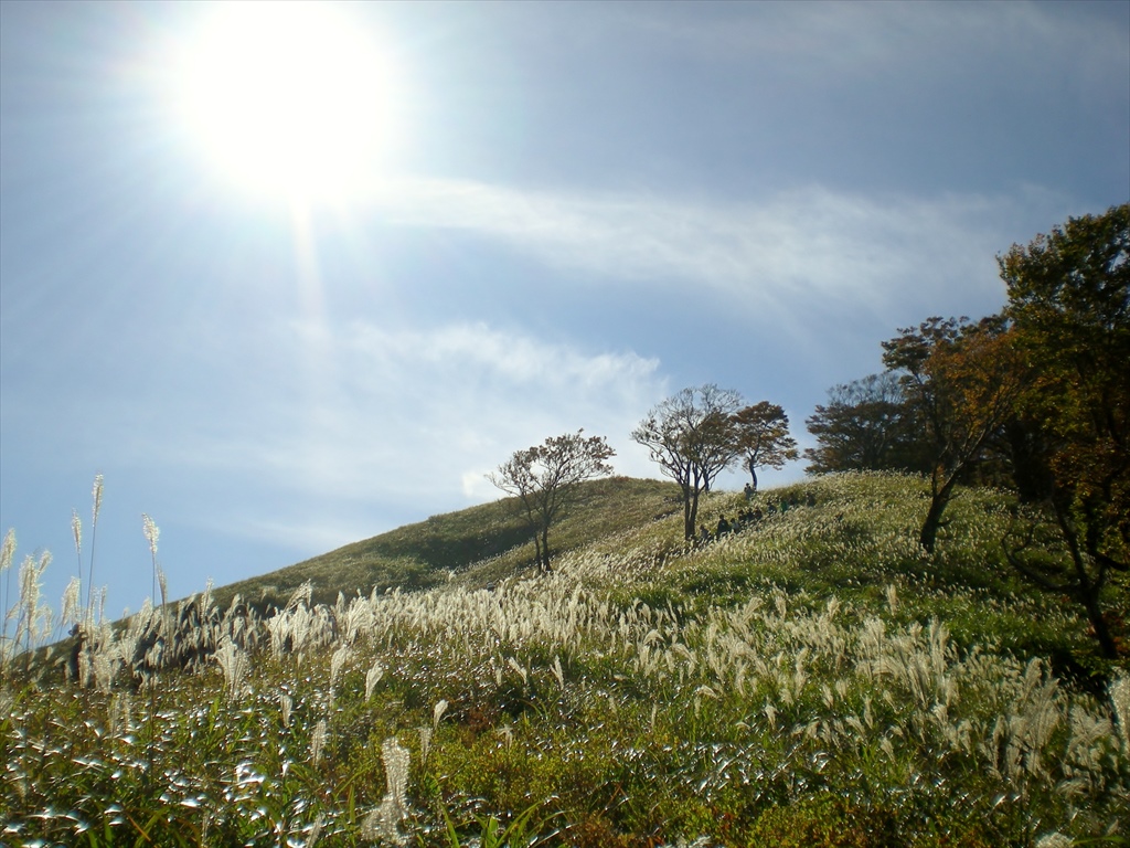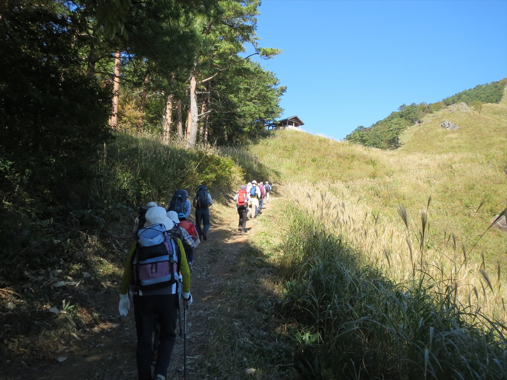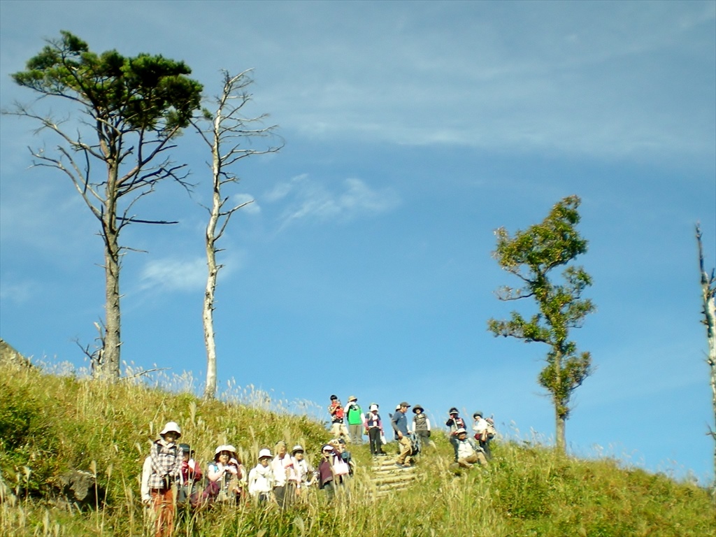| ススキの中を進み・・・ | 無事に下山 | 班ごとにストレッチをしてクールダウンしました |