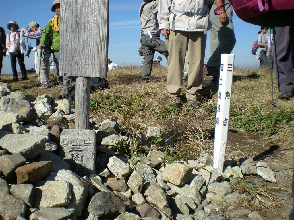 | お楽しみの後は山頂へ向け出発 | あと一息 | 山頂に着きました!三角点 |