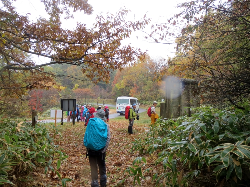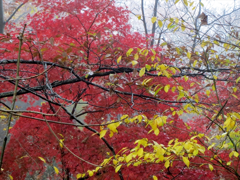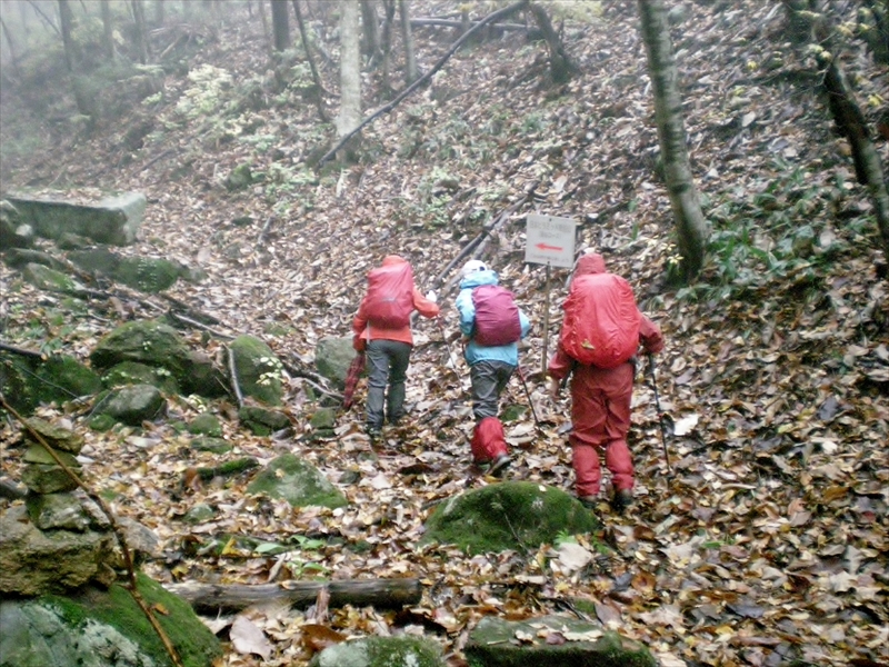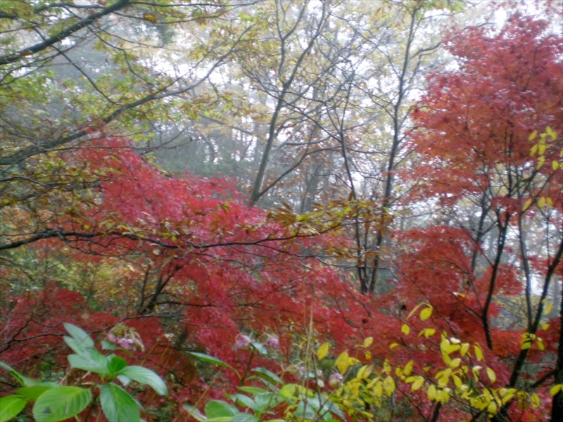 | 無事下山 | 灰原越峠登山口 | もみじの葉が色とりどり・・・ 雨の中お疲れ様でした |