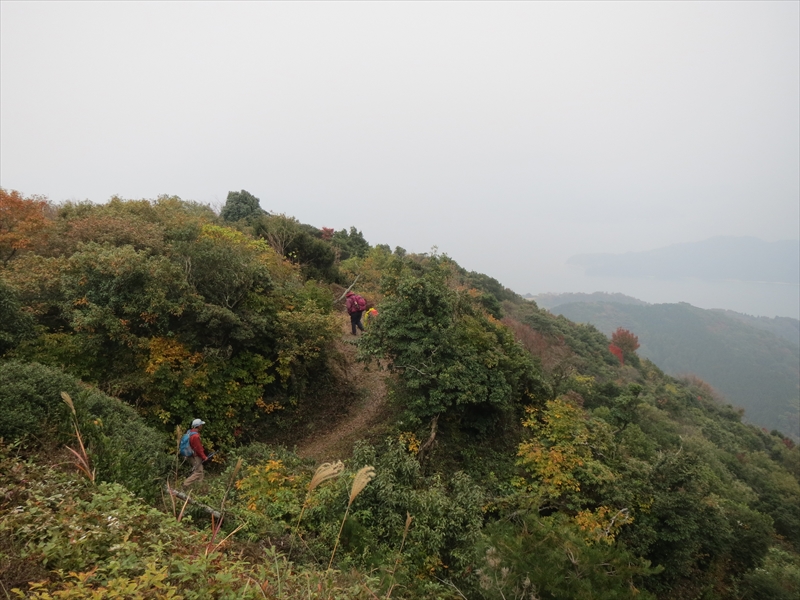 | 海が見えました | 所々紅葉も綺麗です | 尾根道です |