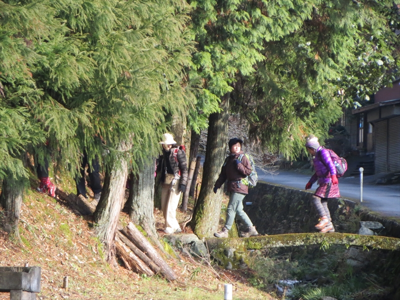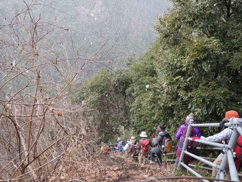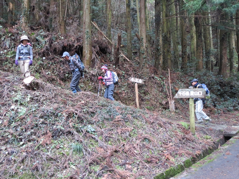 | 林道を横切って下ります | 急な階段を下り | 無事バスの待つ車道へ下山・・・ お疲れ様でした |
