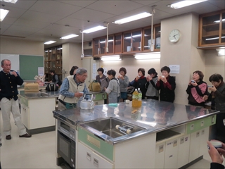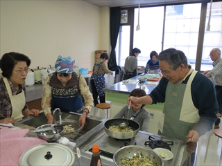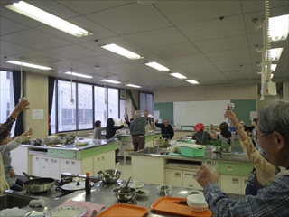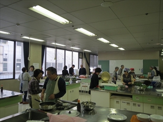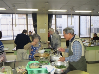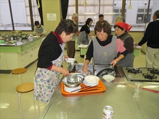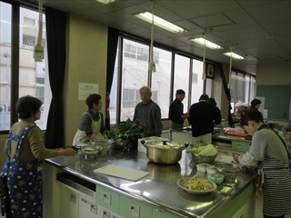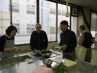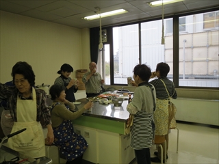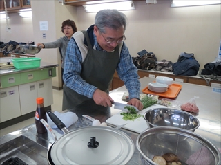 | 各班ごとに調理開始→ | 慣れた包丁さばき エプロン姿が素敵ですね |