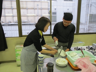| 皿洗い…息ぴったり | 最後にお茶を飲んでお開きに |