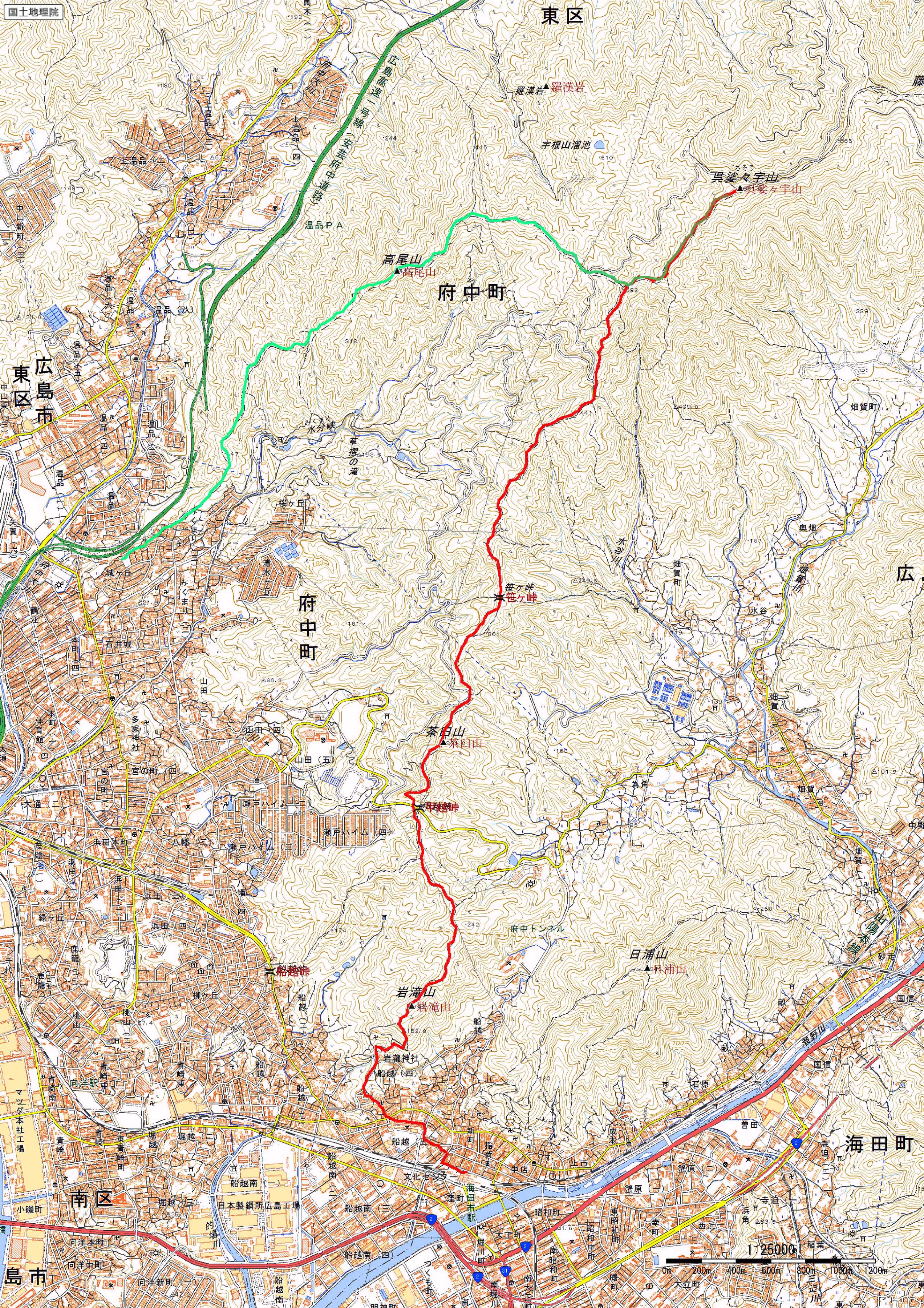 海田駅8:10→岩滝神社8:30→岩滝山山頂9:10→岩滝山下山9:40→