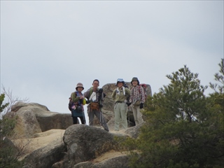 | 昼食後、岩屋観音目指して出発 | こちらも良い顔です(2グループ) | 山頂にて |