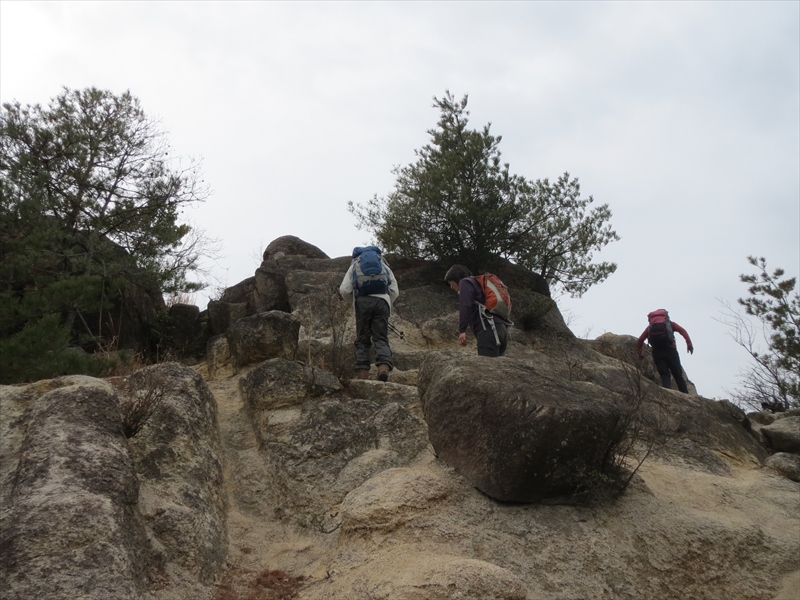 | 急傾斜です | ロープを使って慎重に | 登りも急です |