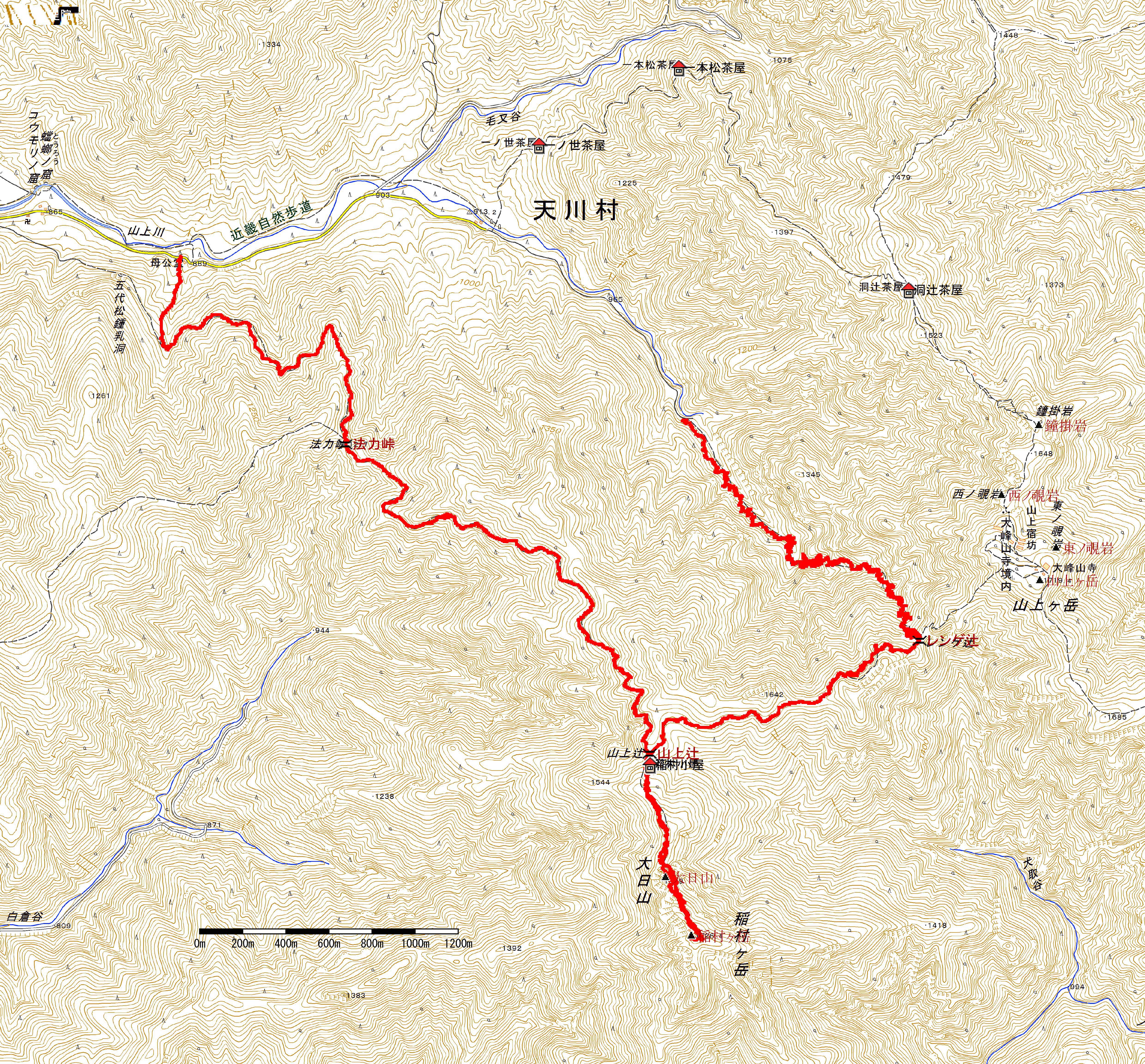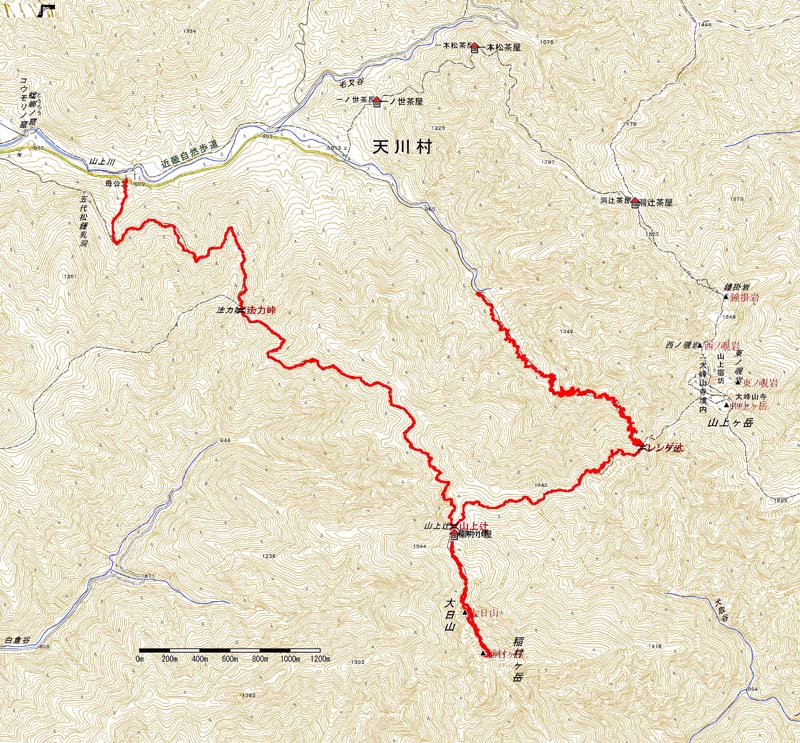 歩いたコース (但し,林道部分及び大日山往復分は除く)