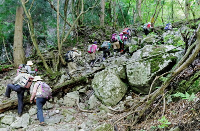 沢沿いの道がだんだん荒れてきます