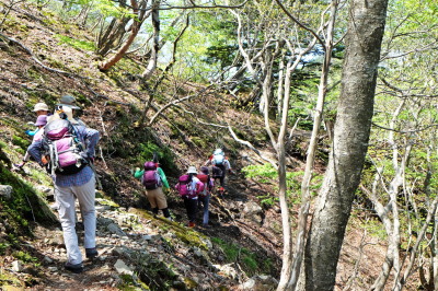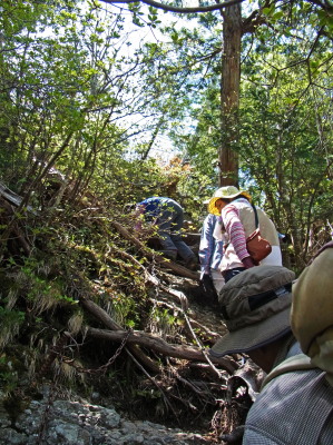 沢筋から尾根へ向かう