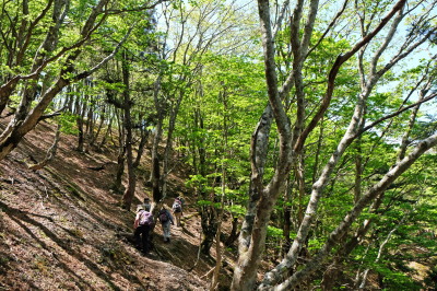 もうすぐ尾根。緑がきれい