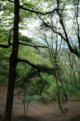 法力峠近くにまで下りると杉林に変わる
