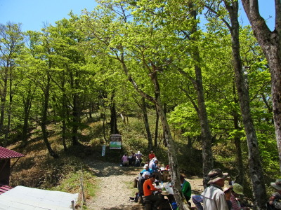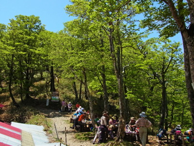 山上辻の稲村小屋横で昼食の大休止