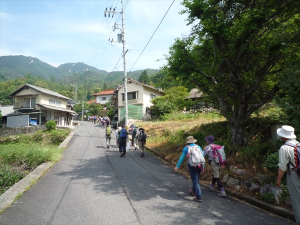 | バスを降り登山道へ向う → | 窓ケ山が前方に → | リーダーより本日のコースの説明 |