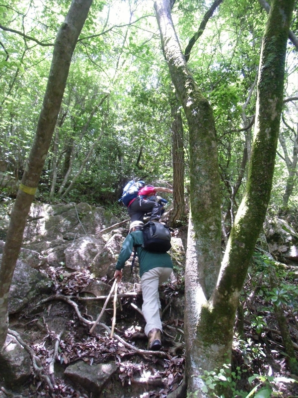 | コアジサイ | ロープを使って登ります | 山頂まで50m主稜線へ上がります |