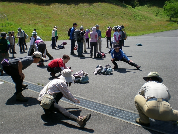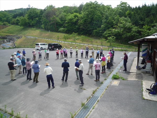 | 青い空も緑の木々も鮮明です → | 6班に分かれ準備体操や自己紹介 → | 大狩山砂防公園を後にし、さあ出発! |