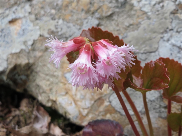 久しぶりのマイクロバス利用の定例山行、体力向上ではなく「のんびりのびのびリフレッシュ」を目標に新緑と春のおいしい空気を楽しんでいただきたいと 思っていたのですが、倒木も多いうえ主稜線まではジグザグの厳しい上りが続くため、みなさん口数も少なくなり、このまま静かに歩いていたらクマが出そうだと心配していたところやっと尾根につきました。ここで小休憩をとり15名の元気のある方々は日の出山に向かいました。 ここより立岩山、市間山まではブナなどの雑木林の新緑の中を散歩しているような なだらかな道が続き軽井沢に行ったことはないけど、こんな感じかな?と思うくらい素敵な道でした。4月29日下見の時につぼみだったエビネはきれいに咲いていましたが、オオカメノキの白い花は新緑に変わり山の季節の移り変わりを感じました。もみじや楓の木も多く秋にも訪れたいと思う山でした。