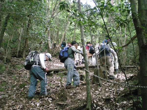 | 山頂方面へ | もうひと踏ん張りです | 荒谷山山頂で集合写真 |