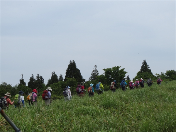 途中、普通に上るだけでも大変な登山道を重たい草刈り機で道を整備されている方々に出会いました。私たちが気持ちよく歩けるのはこのように大変な仕事をしていただいている方々のおかげであることを忘れず、ゴミを落とさないよう、貴重な植物を傷つけないよう、山を楽しみましょう。(記 石田)