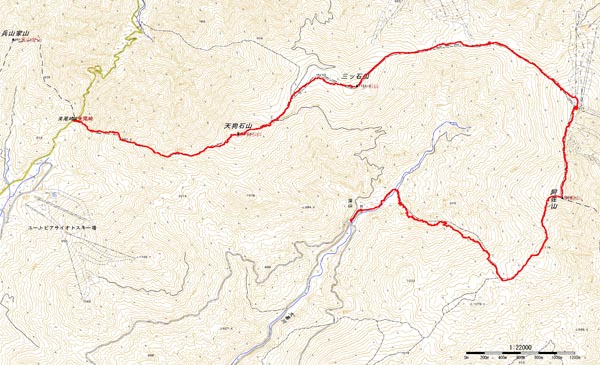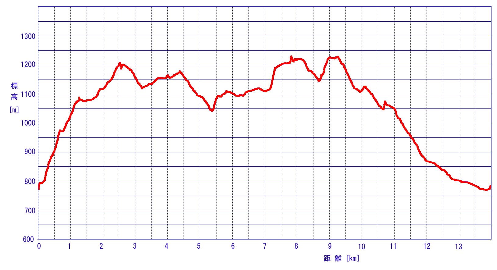 スキー場(昼食)13:35ー14:10阿佐山ー14:35二十丁峠ー15:40阿佐山橋