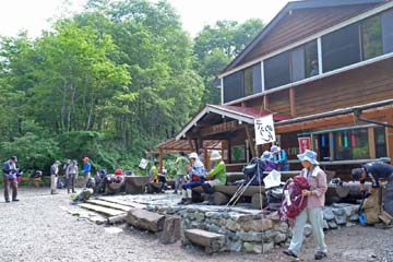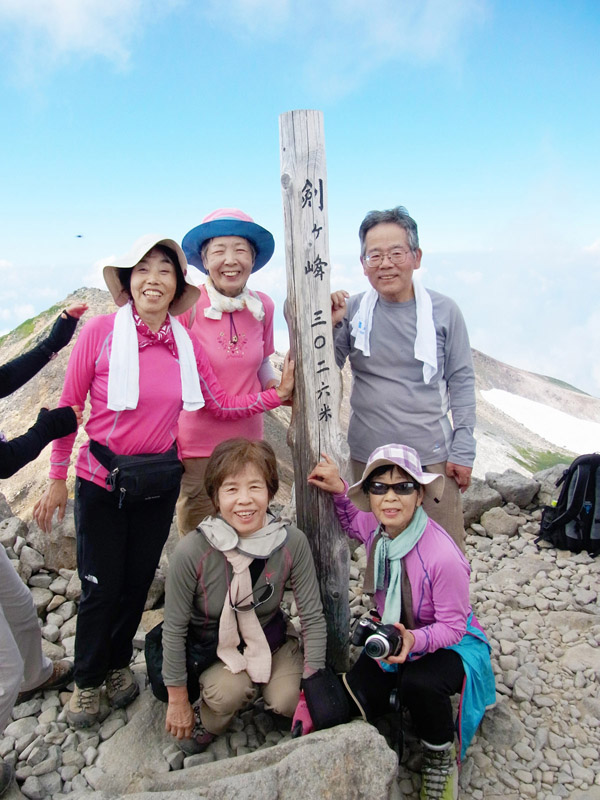 | 槍から北穂 | 奥穂から北穂,焼岳,乗鞍岳 | 槍をバックに全員で |