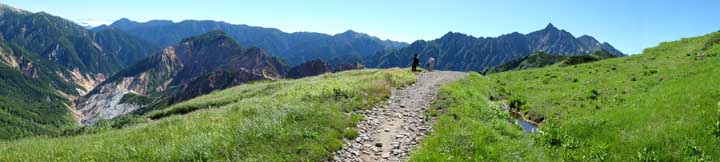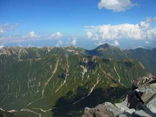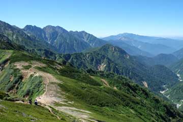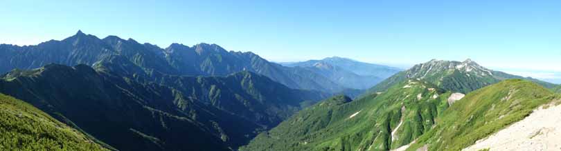 北鎌尾根の向こうに常念,大天井,燕の山々が近くに見えます。左手前は硫黄岳