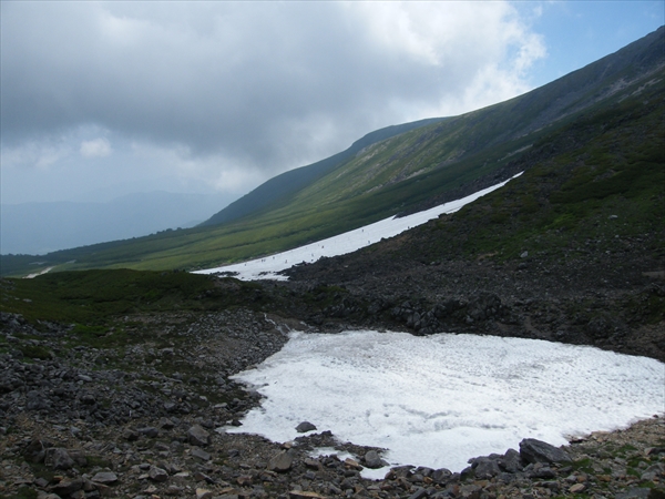 乗鞍岳最高峰剣ケ峰で | わかるかナ? 向こうの雪渓でスキーをしています |