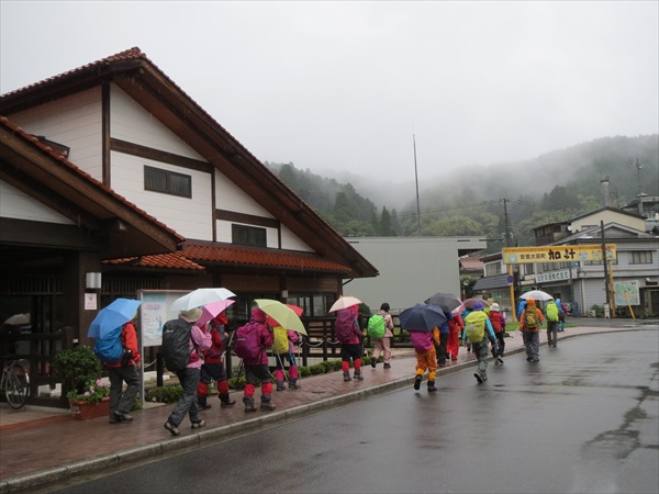 | 登山口で体操と自己紹介 | CLよりコース説明 | 登山口から出発 |