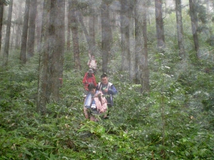| CLを中心に。両端の方ごめんなさい | 下山です。かなり茂っています | 雲の中?靄の中? |