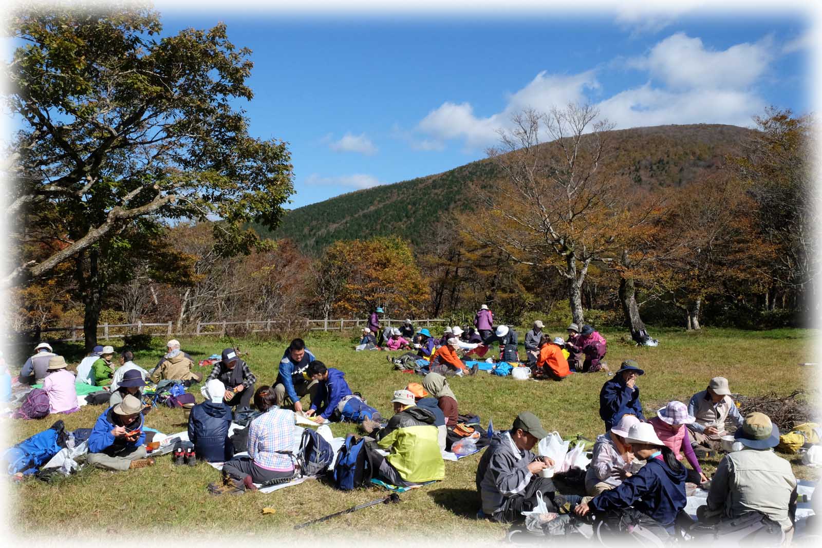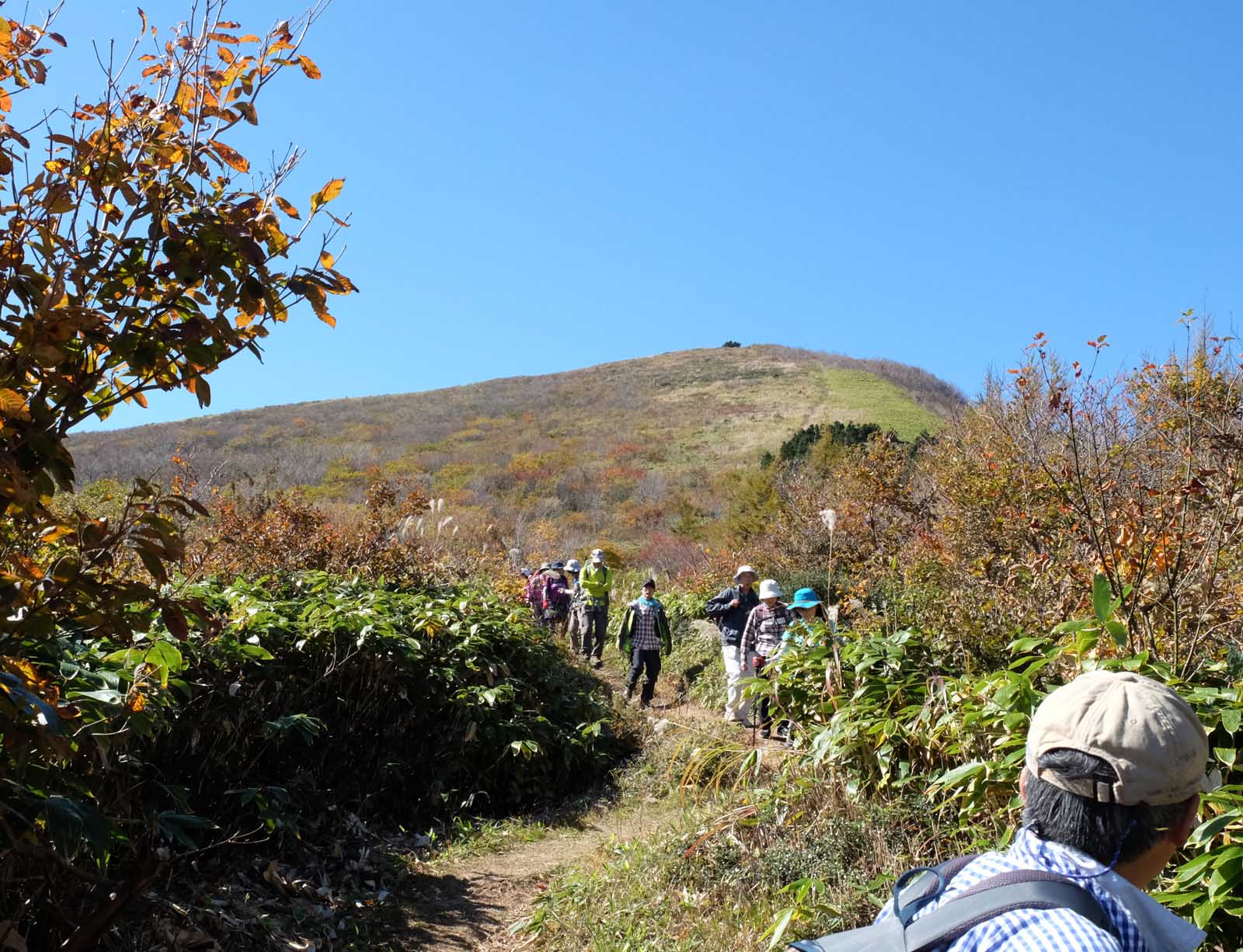 大型バスの定員を越えてしまい,自家用車2台を出してもらうことになってしまった。今年も幸いにも天気に恵まれ。秋の草原の山を堪能できた。