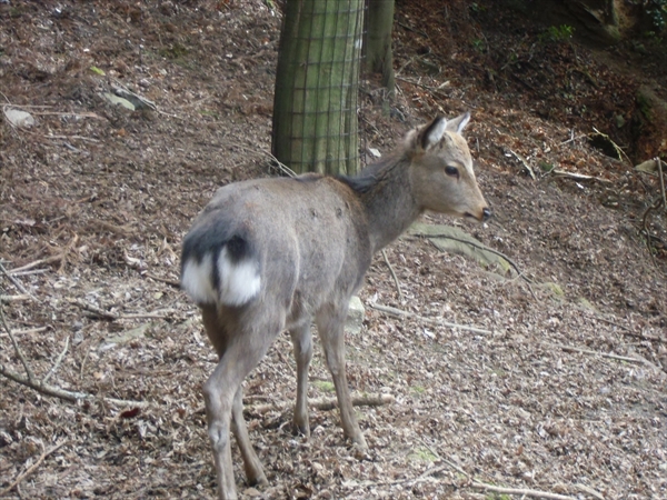 | 獅子岩付近から見た弥山山頂 | 霊火堂付近 | 鹿がお出迎え |