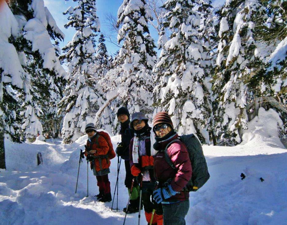 | 登山道横から見ていた怪物 | シラビソの林にダケカンバが目立つ登山道 | 帰り道 雪に埋もれる上人様 |