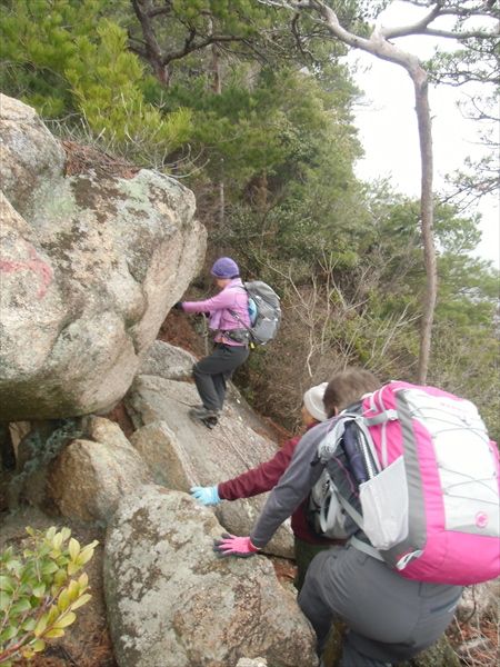 | 天応の街並み | ロープを使って登ります | 難所が続きます |